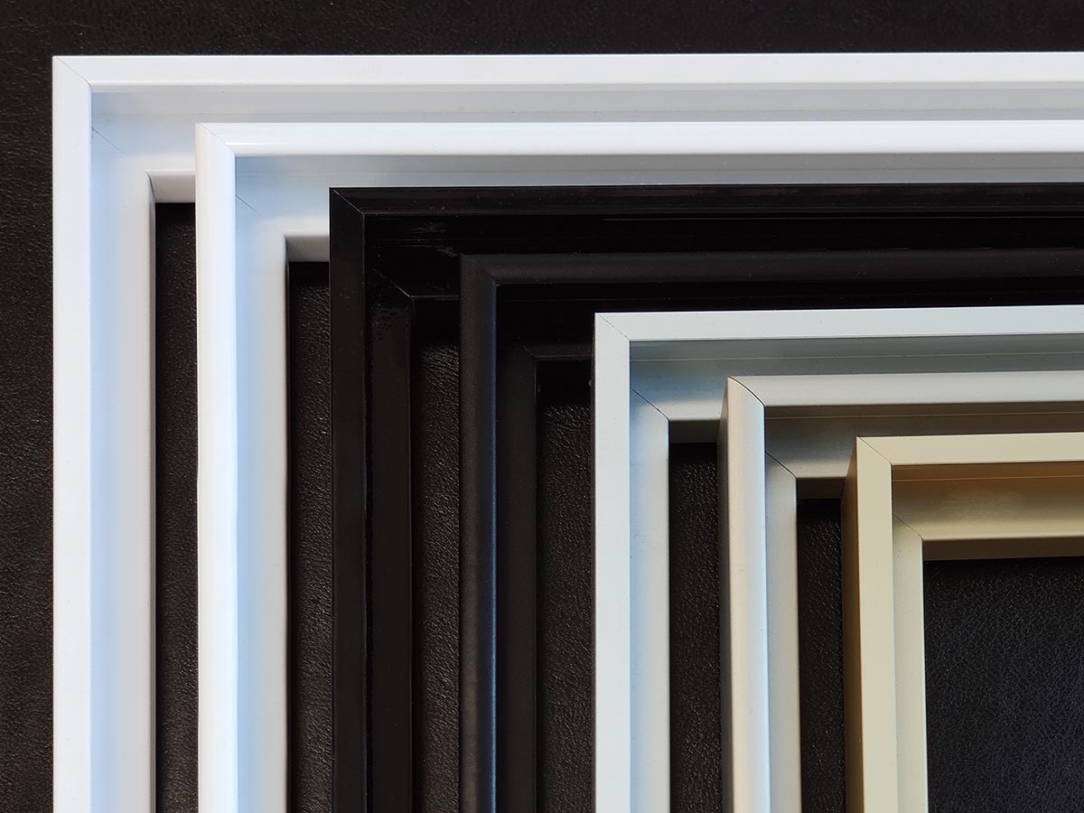 Fotókeretek keresztmetszete és színválasztéka.